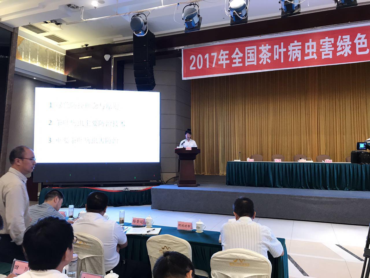 開科初,9月13-15日,韓教授又應農業部全國農技中心邀請,赴四川樂山參加2017年全國茶葉病蟲害綠色防控技術培訓班,主講“茶葉病蟲害綠色防控新技術及應用”的課程(圖7)。 |