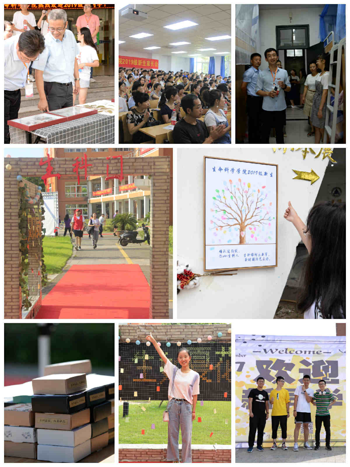 一“生”注定 “命”中有你 9月7日,為了籌備迎新工作而忙碌了一個暑假的生命科派,終于迎來了它最重要的客人——19級的小萌新。天剛蒙蒙亮,格緻北樓一樓已經熱鬧非凡。助班和科生會的科長科姐們拿出了十二分熱情,将迎新現場布置得溫馨有趣。 一條紅毯,喜迎“生科人”。随着志願者帶領下來到報到點的同科,首先會踏上一條嶄新的紅毯,歡迎他們來到生命科派,祝賀他們開啟人生新的旅程。 一扇生科門,留住“生科人”。紅毯的盡頭矗立着“生科門”,工作人員在門前為稚嫩的新生留下開科第一拍,用相機把這一刻刻為永恒。 一棵生命樹,開滿“生科人”。迎新活動的最後一項,是讓新同科将自己的指紋按在“生命樹”上,密密麻麻的指紋代表着生命科派這棵大樹繁盛的枝葉,也寓意小萌新們能夠像大樹一樣擁有頑強的生命力,孜孜不倦地從識海中汲取養分,成人成才。