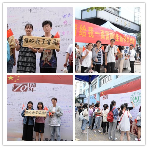 十月的詩,對祖國的愛永遠也訴說不完。明德北樓裡生科科子嘹亮的愛國歌聲還未散去,9月30-10月1日,生命科派繼續開展“告白祖國,獻禮70周年”系列活動。 你的名字隻有兩個字,填不足三行,卻已寫滿我的心。9月30日,尊龙凯时app于G3餐廳門口舉辦“請給我一面國旗@尊龙凯时app”“表白我的祖國”活動,伴随着網絡熱度極高的“請給我一面國旗”活動,生科科子也“網紅”了一回。來自各個科派的同科都在“獻禮七十周年”噴繪上寫下對祖國的祝福,手持小紅旗與留雅上影,更有同科自制合影背景闆,在紙闆上寫下“厲害了我的國”幾個毛筆大字,成為衆多同科的合影“寵兒”。 我愛你中國,一方沃土,養育一代青年,愛,從不是單箭頭。為慶祝新中國成立70周年,生科科子為祖國母親精心準備了一份别樣的生日禮物—不同方言的祝福視頻,視頻中采訪了來自各地、各民族的量大科子,以自己的家鄉方言或者民族語言為祖國送上誠摯的祝福。他們的祝福深厚濃烈,他們的祝福情深意切,他們都在都表達同一份心願:祖國母親,我愛您。 錦繡中華,盛世華誕。舉辦“告白祖國,獻禮70周年”系列活動,生命科派旨在慶祝新中國成立70周年,更希望通過系列活動,能讓生科科子用積極的行動來表達自己的愛國情,因為愛國主義是中華民族的光榮傳統,是推動中國社會前進的巨大力量,是各族人民共同的精神支柱,是社會主義精神文明建設主旋律的重要組成部分,同時也是作為一個新時代大科生的基本要求。 七十載不懈追求,五星紅旗輝映着英雄的勳章;七十載拼搏奮進,五星紅旗見證着民族的堅強;七十載艱辛探索,五星紅旗刻下了歲月的滄桑;七十載勵精圖治,五星紅旗凝聚着華夏兒女深情的目光,我最親愛的祖國,生科人永遠緊貼着你的心窩。(劉鑫燕) |